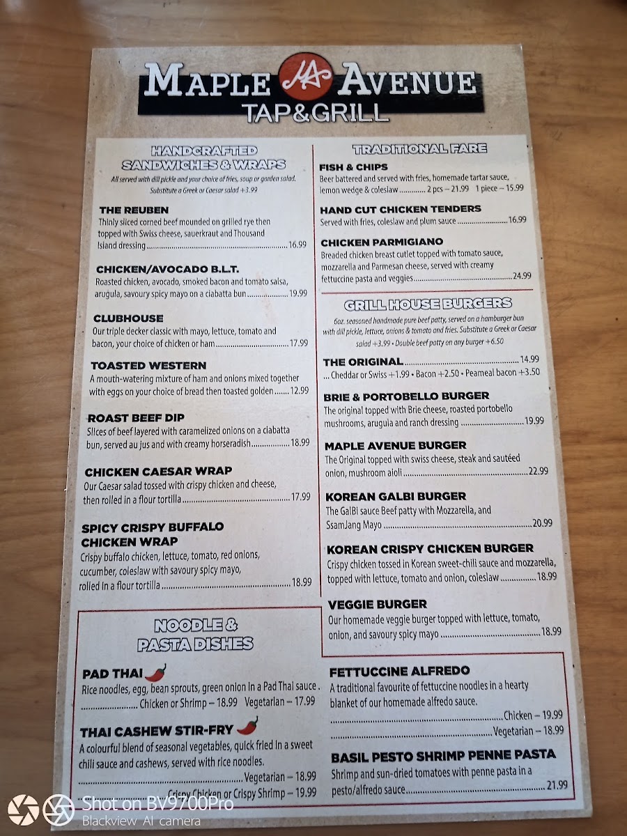 Welcome to Maple Avenue Tap & Grill, where we invite you to indulge in a mouth-watering selection of dishes that are sure to satisfy your cravings. From our signature Pad Thai and Cashew Stir Fry to our savory Chicken Waffle Sandwich and classic Reuben Sandwich, there's something for everyone to enjoy. Don't miss out on our crowd favorites like Poutine, Quesadillas, and Roasted Chicken. For a unique twist, try our Brie & Mushroom Burger or the fiery Spicy Crispy Buffalo Chicken Wrap. Treat yourself to our delectable Crab Cake Benedict or savor our Canadian Classic Burger. With options like the Korean Galbi Burger and the Montreal Smoked Meat, our menu is bursting with flavors that will keep you coming back for more. Stop by Maple Avenue Tap & Grill at 172 Highland St and experience a culinary journey like no other.